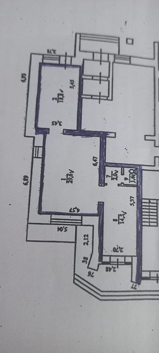 Общая площадь 66,5 кв.м. Три зала, собственный санузел. Высота потолков 3,2 метра. Окна большие.