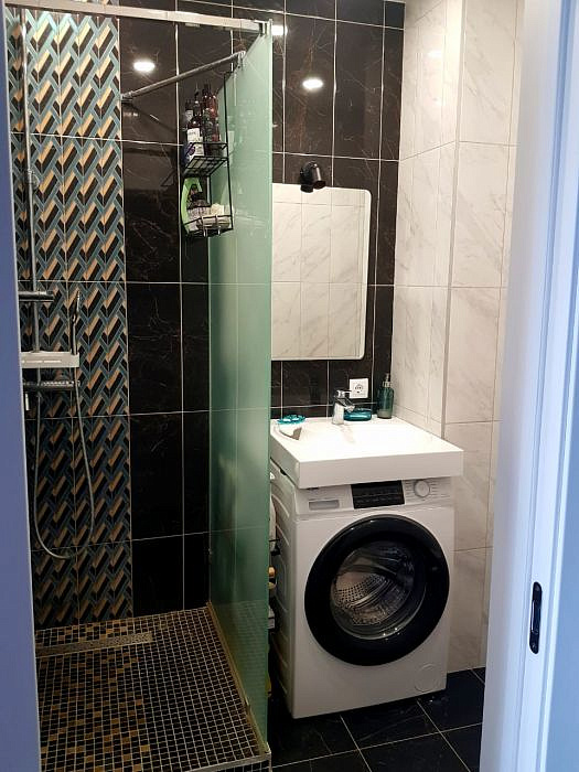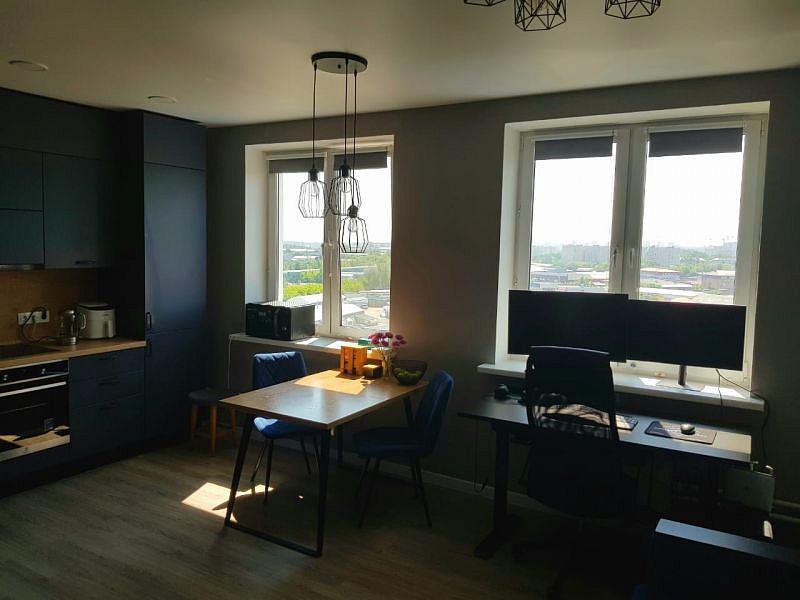 -Просторная кухня-гостиная (21,3 м²) и отдельная спальня. В квартире остаётся вся мебель и качественная бытовая техника Bosch и Haier.