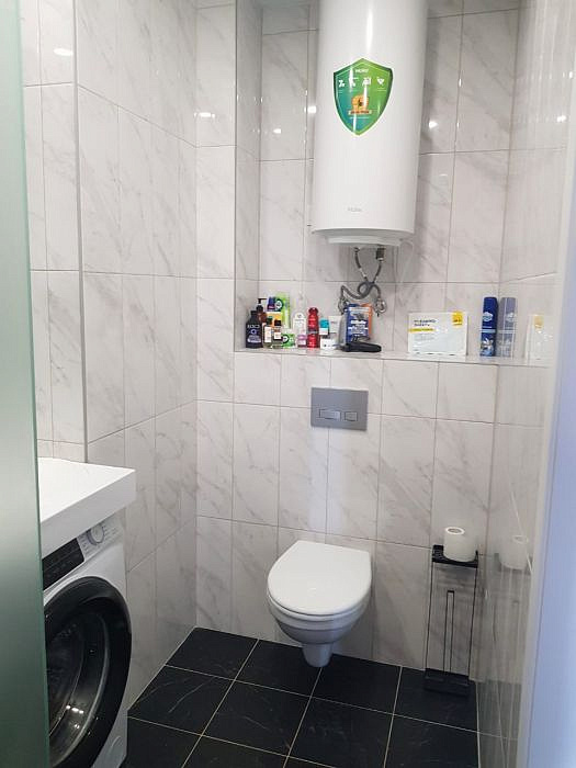 - Санузел с водонагревателем гарантирует постоянное горячее водоснабжение, что особенно важно для Тюмени.