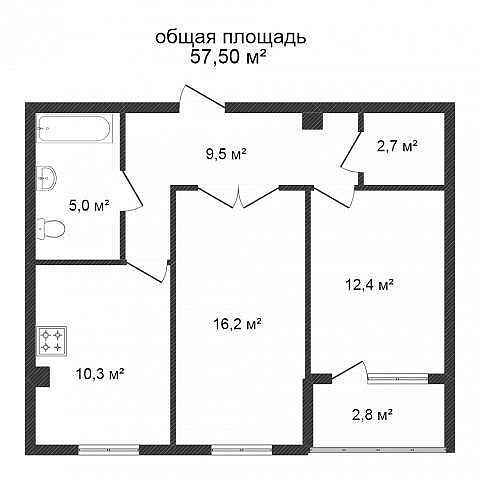 2-к квартира в новостройке, 57 кв.м., улица Ветеранов Труда, 9А