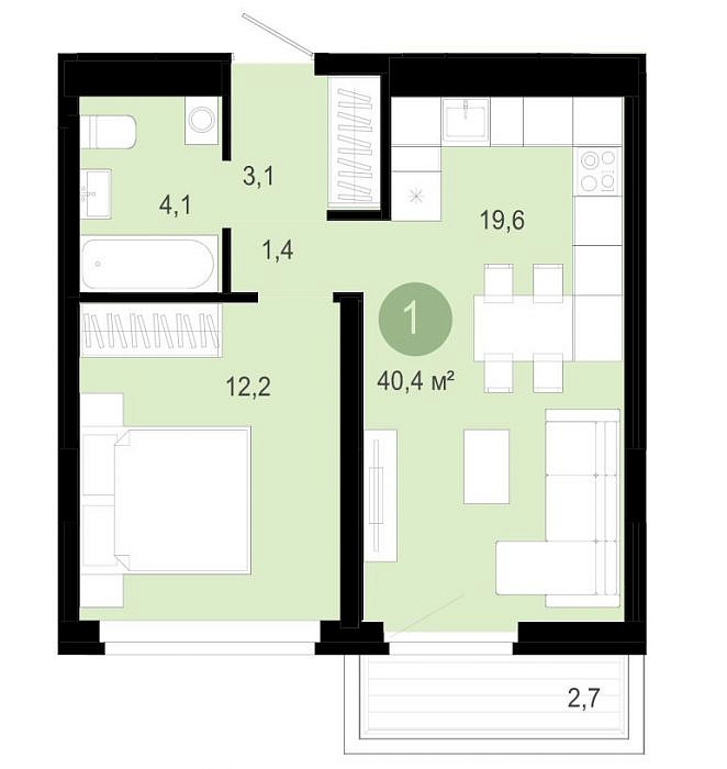 Продается просторная 1-комнатная квартира формата 1+ в ЖК "Речной порт".