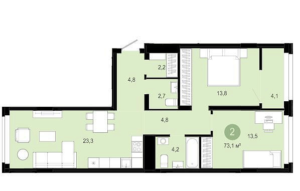 Продается просторная 2-комнатная квартира формата 2+ в ЖК "Речной порт".