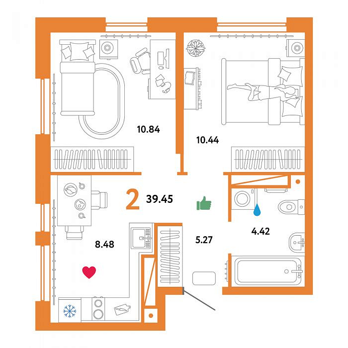 2-к квартира в новостройке, 39 кв.м., жилой комплекс Сердце Сибири
