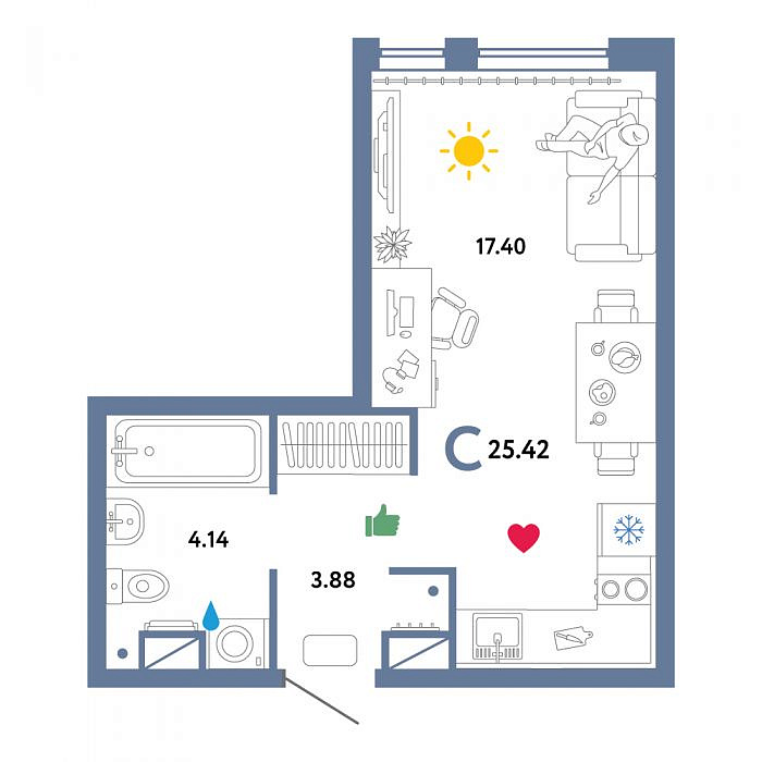 1-к квартира в новостройке, 25 кв.м., жилой комплекс Сердце Сибири