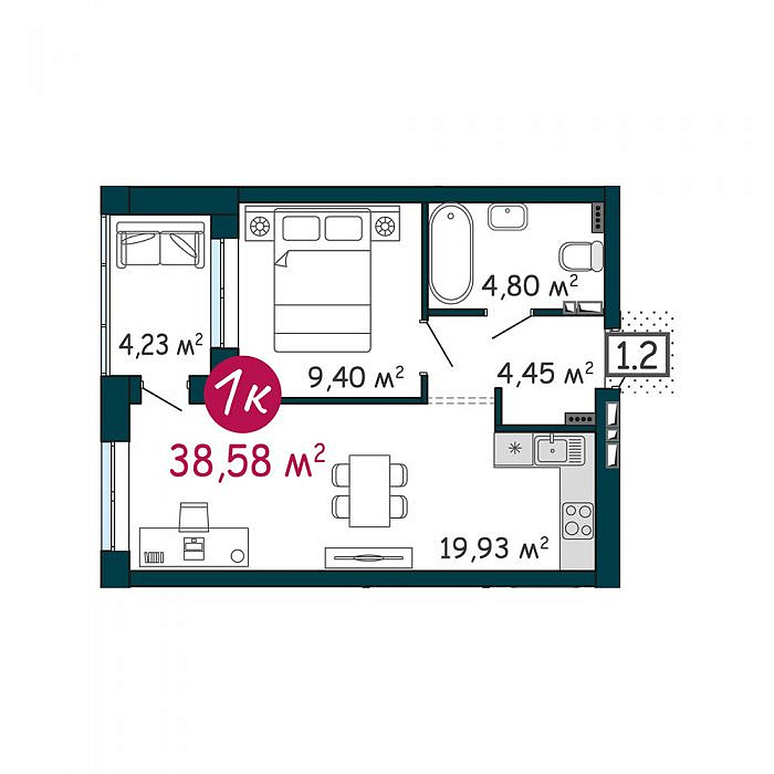 Продается квартира формата 1+ (с просторной кухней-гостиной) в ЖК "DОК". ЖК DOK - жилой комплекс на берегу Туры с живописным видом на реку, Мост влюбленных и исторический центр. Район ДОК располагается близко к историческому центру Тюмени, при этом удален от шумных магистральных улиц. Все квартиры продаются с базовой отделкой, ее называют «предчистовой». Квартира готова к ремонту.