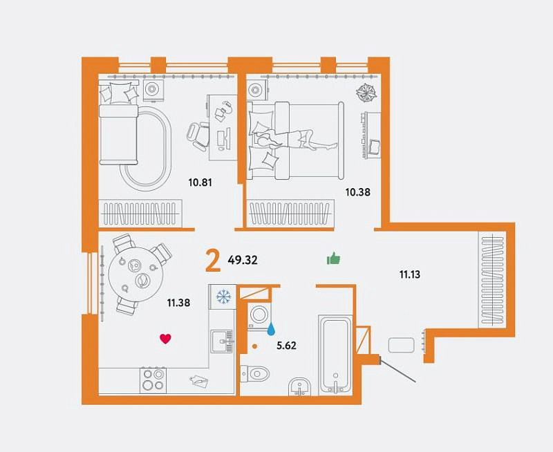 2-к квартира в новостройке, 49 кв.м., жилой комплекс Сердце Сибири