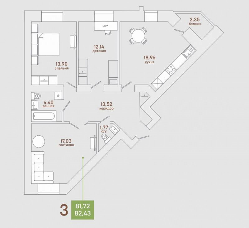 3-к квартира в новостройке, 81 кв.м., Амурская улица, 39