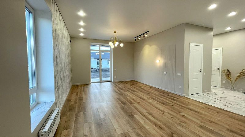 Продается новый дом 121м2 с ремонтом по дизайн-проекту, на высоком ровном участке 6 сот., в Городе, коттеджный поселке Лето-Парк. Центральная вода, газ, электричество, переливной септик.