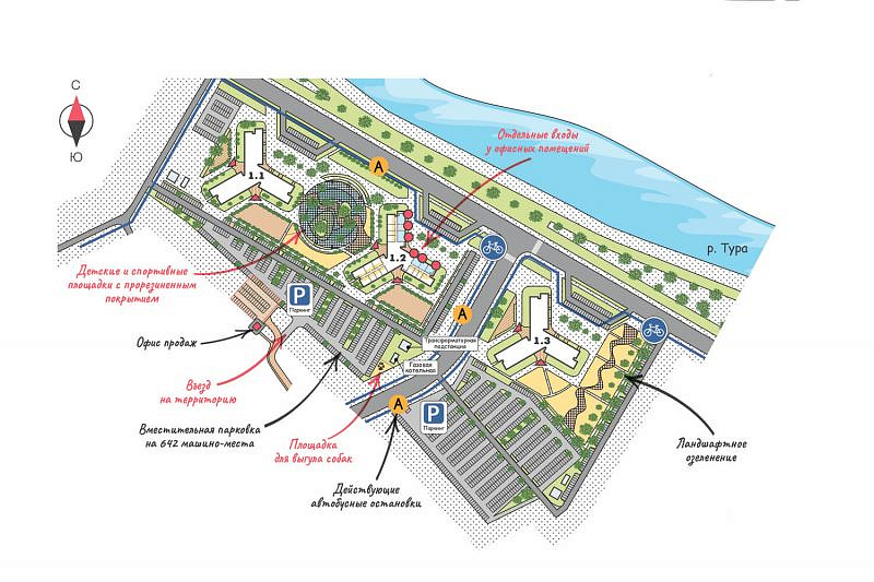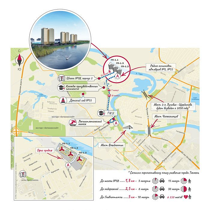 ЖК DOK - жилой комплекс на берегу Туры с живописным видом на реку, Мост влюбленных и исторический центр.