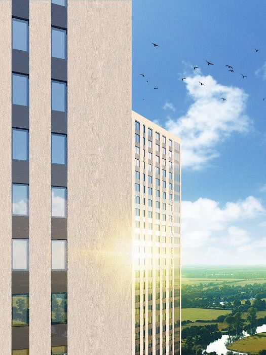 Каждое здание в плане представляет собой рисунок трилистника, тремя лучами раскрывающегося в пространстве.Распахнутые крылья зданий визуально открыты на реку и историческую часть города.