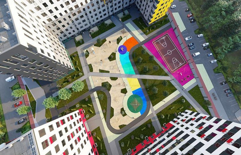 Двор жилого комплекса — это закрытая территория творчества без машин. Все оснащение двора в сдержанном европейском стиле с разноуровневой подсветкой вдохновляет к созданию прекрасного. Яркое прорезиненное покрытие детских и спортивных площадок. Арт-объект в центре двора, который, кстати, также выбирают будущие жильцы. Все здесь продумано для комфортного проживания.